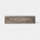 Elegante plato de nombre con su nombre y título impreso en una elegante textura de grano de madera de roble marrón.