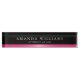 Elegante placa con su nombre y título impreso en blanco sobre un fondo negro encima de un gradiente de satén rosado.