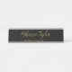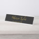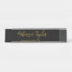 Elegante tablero de nombres de escritorio personalizado con guión negro y dorado
