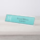 Placa De Nombre Elegante Monograma Verde azulado Faux Metalizado E