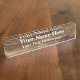 Mejore su área de trabajo con este elegante placa acrílico personalizado. Con un diseño elegante y transparente con grabado en blanco, este accesorio de escritorio personalizado añade un toque profesional y sofisticado a cualquier oficina o negocio. Perfecto para mostrar su nombre, título o compañía con estilo y claridad.