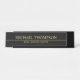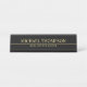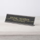 Haga que su negocio parezca más profesional con un elegante plato de nombres de escritorio en negro y dorado. Este plato de nombre de escritorio incluye el nombre y el título en el estilo de letra serif profesional dorado con línea dorada en el fondo negro. Perfecto para un agente inmobiliario, consultor, contable y muchas otras profesiones. Nota: Los detalles del Relieve metalizado se simulan en la obra de arte. Este producto no contará con ningún relieve ni capa que creen un efecto metalizado.