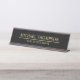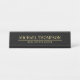 Este plato de nombre de escritorio presenta nombre y título en estilo serif profesional dorado con línea dorada en el fondo negro.