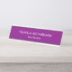Elegante y minimalista plato con el nombre del escritorio con fondo violeta. Agrega tu nombre y título de trabajo.