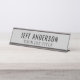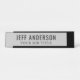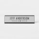 La moderna placa de nombres de escritorio en negro y gris claro incluye el nombre del empleado y el título profesional en tipos de letra elegantes. Puede ser totalmente personalizado con el texto y los colores personalizados, así como con el color del marco elegido.