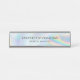 "Trato humorístico, chispeante y poco falaz, empresa de fondo holográfico de escritorio Nombre Plate para propietarios de pequeñas empresas y grandes organizaciones. El diseño presenta una tipografía moderna, fuentes de moda y un fondo sencillo pero eficaz. Simplemente agregue su logotipo, nombre y detalles de negocios a esta tarjeta brillante y moderna haciendo clic en el botón "Personalizar" que aparece arriba. NOTA: Los detalles holográficos se simulan en la obra de arte. No habrá ningún efecto de brillo holográfico real cuando se imprima.