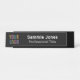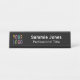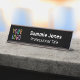 Personalice fácilmente nuestra placa de nombres de escritorio cambiable con su propio logotipo comercial, nombre, cargo de trabajo u otro texto personalizado. Se puede personalizar el color de fondo negro. Disponible en otros colores metalizado en dos tamaños - estándar de 2 pulgadas x 8 pulgadas o largo de 2 pulgadas x 10 pulgadas - y en dos estilos - como placa de nombre de escritorio o placa de nombre de puerta. No hay cantidad mínima de pedido ni cargo de instalación.