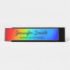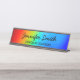 Los colores holográficos brillantes en este gradiente del espectro del arcoiris son lo que mi cámara captó mientras tomaba una imagen macro de una gota de agua en un DVD: aqua, cian, rosa, azul, púrpura, naranja, rojo y amarillo. Se puede mover la foto para ver un diseño diferente en color arcoiris oscuro. Placa personalizada de nombres de escritorio con espacio para el nombre y el cargo. El estilo y el tamaño del tipo de letra se pueden cambiar si es necesario.