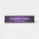 Un gradiente negro, morado oscuro y púrpura real con un elegante estilo de fuente para su placa de nombre de escritorio. Se puede personalizar el estilo de letra elegante del nombre. Puede cambiar el espaciado de letras en el título del trabajo si es necesario.