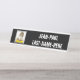 Características del este del escritorio diseño simples de la placa de identificación al área para una imagen cuadrada adaptable, junto con un nombre adaptable en texto blanco intrépido en un fondo negro. Esto pudo ser una placa de identificación útil del escritorio para un ejecutivo o un encargado.