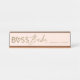 Personalice y decore su espacio de trabajo y hágalo saber quién es con nuestra divertida, elegante y moderna placa con el nombre del personalizado "Boss Babe". El diseño presenta un elegante fondo de color claro con "Boss Babe" diseñado en un moderno guión de cepillo de oro y tipografía de San Siervo con un elegante corazón reemplazando la letra "o" y personalizada con su "también conocido como"... su nombre.