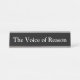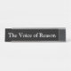 Una placa de identificación del escritorio para "la voz de la razón" en su lugar de trabajo.