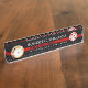 Una línea roja fina letrero del escritorio del nombre del personalizar y del número de estación. Ofrece su nombre, cargo, ubicación del departamento, número de estación, y el año que la estación fue establecida.