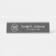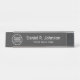 Placa de nombre con inserto de plástico de color intercambiable. Diseño sencillo y moderno con el logotipo de su personalizado en un fondo gris oscuro y campos de plantilla para su nombre, título o nombre de la empresa.