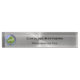 Placa de nombre plateado con logotipo de negocios que puede utilizarse como complemento perfecto para un escritorio.