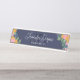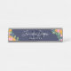 Navy blue floral desk nameplate with beautiful flowers printed to decorate the corners. Adorn your desk with this nameplate, that has your name in a thin script, your title, and your initials.