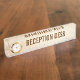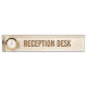 La placa con el nombre del escritorio acrílico de "madera" presenta un fondo de madera clara y fina con textura de grano. © Morning 6