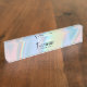 ilustracion holográfico líquido de mármol en tonos pastel arcoiris; su nombre y texto escrito con letras tipográficas de moda. No contiene un holograma real.