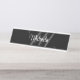 Minimalistic modern monogram initial name black white. Personalizable custom name with a cursive initial behind on a black color.