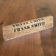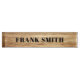 A modern black font with a brown drop shadow (both colors are customizable) over a photo of oak brown wood.