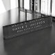 Personalizado Lujoso ejecutivo de Black and White Minimalista Business Name Plate con tipografía con letras blancas para el monogramado añada tu propio nombre y profesión o título de trabajo. La placa de nombre profesional de negocio se puede personalizar con su nombre y título de trabajo. Póngase en contacto con el diseñador para obtener elementos coincidentes personalizados.
