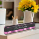 Clásica y ostentosa placa de nombre de escritorio de monograma para creativas femeninas y profesionales de la industria de la belleza creada en una placa acrílica de alta calidad con elegantes elementos de diseño morado impresos digitalmente junto con la plantilla de nombre que puede personalizar con su nombre de empresa, iniciales de monograma, nombre profesional o compañía.