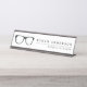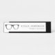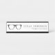 Un letrero divertido y alegre con todo profesional del escritorio que ofrecía un par de vidrios retros del espectáculo siguió por su nombre en una fuente clásica del estilo al lado de él.