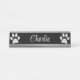 Placa De Nombre Paw de perro plateado sobre fondo negro