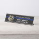 El nombre del escritorio incluye una placa dorada con la delgada línea azul. Edite el nombre del departamento, el nombre y el título del oficial, para un regalo de la clase para su profesional favorito en la aplicación de la ley.
