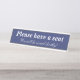 Este respetable diseño incluye el mensaje "Por favor, siéntese", junto con el mensaje "¡Pronto te servirán!". Se podría utilizar en un salón de estar o en una sala de espera para informar a los clientes o clientes de que se les ayudará en breve y que, entretanto, deben sentarse.