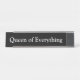 Una placa de identificación del escritorio para la "reina todo" en su lugar de trabajo.