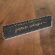 Monograma Mínimo Giralmente Simple Firma Guión Personalizado Nombre de Escritorio Personalizado Plate. Este diseño presenta tu nombre de pila en una tipografía de tipo de letra de cola de corte con manto de bonito sobre fondo negro y dorado. Estos son fáciles de personalizar y pueden ser utilizados como un negocio de belleza, trabajo profesional, negocios, empleado y para todo aquel que ame el estilo mnimalista.