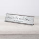 Haz que tu negocio parezca más profesional con un guión moderno en negro y plateado. Este plato de nombre de escritorio incluye el nombre en el estilo de letra de escritura moderno negro y el título en sans modernos negros serif estilo de fuente en el fondo plateado. Perfecto para un agente inmobiliario, consultor, contable y muchas otras profesiones. Nota: Los detalles del Relieve metalizado se simularán en la obra de arte. Este producto no contará con ningún relieve ni capa que creen un efecto metalizado.