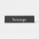Placa de identificación divertida del escritorio con el nombre o el cargo de "Scrooge" para ese mezquino, reducción de los costes, cheapskate en su oficina que dice "Bah, embaucamiento!" todo.