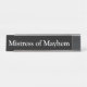 Una placa de identificación del escritorio para la "señora de la mutilación" en su lugar de trabajo.