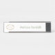 Add your name and logo to create a professional desk name plate. The modern sage green script is editable. Add your corporate logo to the left of the name. This desk sign is simple yet elegant.