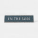 Clásica placa de nombre de escritorio en blanco y negro "Soy el Jefe". Se puede personalizar completamente con el texto y los colores personalizados.
