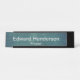 Puede personalizar la placa con su nombre y título en texto gris. El diseño tiene el aspecto de una pizarra.