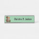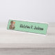 Este escritorio o el plato con nombre colgado es verde menta con una pareja de gatos tierno y femenino. El gato amarillo comparte ratas de su canasta con el macho marrón. Personalizar tu nombre con la plantilla.