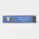 Esta elegante placa con su nombre es la elección perfecta para los oficiales de policía con un auto de policía blanco y negro vintage a la izquierda y detalles de su nombre y departamento en la tipografía blanca a la derecha en un fondo azul para personalizar.