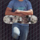 Un skateboard elegante y de moda con la belleza dinámica de la pintura oscilante en colores cálidos de otoño. Este arte moderno y vibrante exhibe sorprendentes manchas de colores tierra que capturan la esencia del otoño. Personalizar el monograma y haz de este skateboard el regalo más genial para tus amigos o familia.