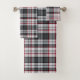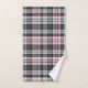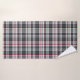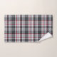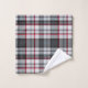 Funda tartán de textura gris con rayas finas rojas y azules.