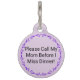 Esta linda etiqueta de Llama a mamá es perfecta para perros o gatos que aman su comida. Personaliza con tu propio número de teléfono en la parte posterior.