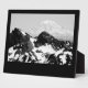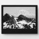 Fotografía en blanco y negro del monte Rainier con una cordillera accidentada en primer plano. Derechos reservados ©2023 Kimberly J Tilley. zazzle.com/store/developingnature