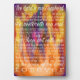 La cita inspiradora del Salmo 23 con el arte original, "Forgeado", nos recuerda una eterna promesa escritural. Forjados en la llama, los feroces juicios sirven para iluminar los corazones de la humanidad. El arte abstracto del arcoiris vibrante con el simbólico Sagrado Corazón de Cristo en el centro.