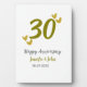 Placa Expositora aniversario feliz número 30 gris dorado pareja
