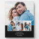 4 collage de fotos aniversario de boda placa de sobremesa con caballete. Reemplace las fotos con las suyas y agregue su texto.
