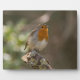 Un Robin europeo (Erithacus rubecula) parado en una rama de árbol rota cubierta de gallinas.