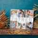 Crea un regalo dulce para papá este Día del Padre con esta placa de seis collages de fotos. "PADRE" o su apodo preferido aparece en el centro con letras en gris-azul ahumado, con su mensaje personalizado y los nombres de los niños puestos.
