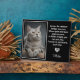 Honra a tu querido compañero y atesora los recuerdos con una placa conmemorativa personalizada para mascotas con una foto, que presenta un corazón plateado único y un diseño de borde. Esta placa hace un regalo sincero para ti mismo, familiares o amigos, sirviendo como un hermoso tributo a un gato querido. Esperamos que este recuerdo te brinde consuelo, paz y gratos recuerdos de tu amigo peludo. Agrega tu foto favorita. Fondo negro chic.